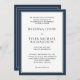 Faire-part de mariage de bon goût à la simplicité classique, ce design comporte une bordure noire encadrant votre texte pour attirer l'attention sur les détails mariages affichés sur la carte. Vous pouvez ajouter, supprimer ou ajuster le placement du texte en fonction de vos besoins. Les couleurs bleu et blanc de la marine, toujours très prisées, conviennent parfaitement aux mariages, quelle que soit la saison de l'année et à toute heure du jour ou de la soirée.
