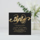 Elegant Chic Black and Gold 30 Script 30th Birthday Invitation. Ce modèle d'invitation de fête d'anniversaire moderne présente un texte "trente" élégant dans un énorme faux feuille d'or tourbillonnant script de calligraphie manuscrite (ou typographie) avec queues d'échasses, jumelé avec le numéro "30" pour plus d'accent, détails de fête en or sur arrière - plan noir. Au verso faux feuille d'or tourbillonnante motif sur arrière - plan de couleur noire. Parfait pour fêter les trentièmes anniversaires marquants dans le style, cette invitation ajoute une touche de glamour à toute fête, aussi bien pour les hommes que pour les femmes. Vous cherchez un autre âge ? Envoyez-moi simplement un message — Je suis heureux de customiser cette invitation pour n’importe quel âge ou étape !