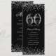 Invitation Élégant 60e Anniversaire Menu Confetti Argent