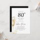 This is a modern and elegant 80th Birthday party invitation. Using a minimalist design of a flute of champagne, easily edit the text as required using the provided template and celebrate this milestone birthday in elegant style.
