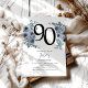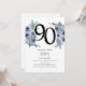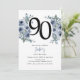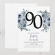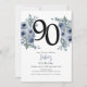 Invitation Élégant Anniversaire 90 ans Fleurs Bleues