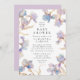 Cette élégante invitation au baby shower est parfaite pour le printemps et l'été. Ce design présente des iris aquarelles dans les tons lilas et bleu périwinkle. De subtiles touches d'or ajoutent un élément magique.