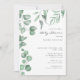 Elégante invitation au baby shower de feuillage d'eucalyptus.