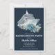Elégante invitation de bachelorette de croisière bateau de croisière. Personnalisez-le avec le nom de la mariée et les détails de la fête, y compris la date, la ligne de croisière, le port de départ, les informations RSVP, et toute autre information nécessaire pour vos demoiselles d'honneur. Conception avec un bateau aquarelle et de belles fleurs sur un arrière - plan bleu marine et des détails argentés.