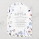 Invitation Élégant Baptême Script Dusty Fleur sauvage bleu