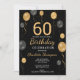 Invitation Elégant Black & Gold Balloons 60e fête d'anniversa