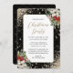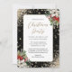 This elegant black and gold Christmas party invitation featuring gold confetti, white poinsettia, holly with red berries and other winter botanicals is perfect for Christmas parties, holiday soirees, corporate events, holiday cocktail parties and more. Easily personalize this invitation with your party details.