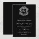This elegant black and white monogram wedding invitation features an ornate crest with interlocked fancy script calligraphy for the initials of the bride and groom and the names, in classic black and white. Find matching products in the collection, or message me through Zazzle Chat for more products and design tweaks.