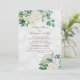 Roses blanches élégantes/faire-part de mariage fleurie et verdoyante. L'avant et l'arrière de cette invitation sont personnalisables.