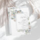 Invitation Elégant bleu Dusty et Mariage floral rose