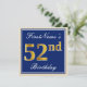 Invitation Elégant, Bleu, Faux Gold 52e anniversaire + Nom