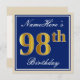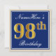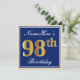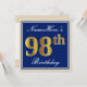 Invitation Elégant, Bleu, Faux Gold 98e anniversaire + Nom