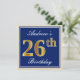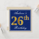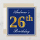Invitation Elégant, Bleu, Faux Or 26ème Anniversaire + Nom
