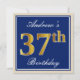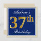 Invitation Elégant, Bleu, Faux Or 37ème Anniversaire + Nom