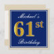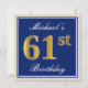 Invitation Elégant, Bleu, Faux Or 61ème Anniversaire + Nom