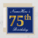 Invitation Elégant, Bleu, Faux Or 75ème Anniversaire + Nom