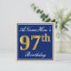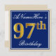 Invitation Elégant, Bleu, Faux Or 97ème Anniversaire + Nom