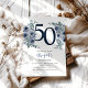 Invitation Elégant bleu floral 50e anniversaire