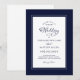 Elégant design mariage bleu marine foncé avec calligraphie moderne et script en bleu arrangé dans une belle bordure bleue chic assortie. La bordure est accentuée d'une élégante petite bordure blanche. Un modèle moderne pour la date et l'année complète le design calligraphique unique et les prénoms et prénoms du couple. [REMARQUE : L'affichage de la date du mariage tel qu'indiqué, utilise la barre ou la ligne verticale qui se trouve au-dessus du \ sur un clavier ou sur votre appareil intelligent avec les caractères spéciaux. Vous pouvez également customiser avec n'importe quel autre personnage de votre choix.] Le dos de l'invitation est blanc. Envoyez un courriel à invitationsuites@gmail.com avec des questions ou des demandes personnalisées.