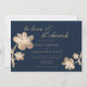 Un classique élégant script d'or élégant calligraphie formelle marine bleu et or peint main à la main invitation de mariage floral.