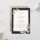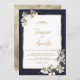 Invitation Elégant bleu marine or blanc orchidée Mariage flor