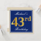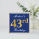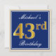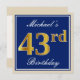 Invitation Élégant, Bleu, Or Faux 43e Anniversaire + Nom