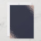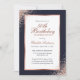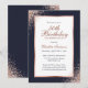 Elégante invitation d'anniversaire en or bleu et rose avec détails de fête d'anniversaire dans un cadre en or rose orné de confettis en or rose. Invitation d'anniversaire bleu marine. Invitation d'anniversaire en or bleu et rose. Invitation d'anniversaire d'or rose. Personnalisez facilement ce modèle à n'importe quelle fête d'anniversaire.