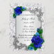 Joli cadre rose bleu et motif feuille argent. Surprenez vos amis et votre famille avec une invitation de fiançailles charmante qui allie style classique et détails frais et modernes lorsque vous envoyez cette invitation élégante. Cette belle carte d'invitation est prête à être personnalisée. Personnalisez la carte en changeant le texte dans les champs avant et arrière. Vous pouvez modifier le style de police, la taille et la couleur, ainsi que le type et le style de papier.