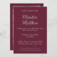 Invite guests to your wedding with this sophisticated invitation featuring elegant silver/grey script on a dark blood red background. The back of the card includes a space to upload your favorite couple photo and personalize your initials. On the front, you can add all your wedding details. This design offers a timeless and stylish way to announce your special day.