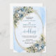 Set the tone for an unforgettable celebration with this elegant watercolor wedding invitation, beautifully designed with dusty blue florals, soft white peonies, and delicate eucalyptus