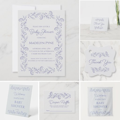 Invitation Elegant Blue Spring Floral Vines Baby Shower