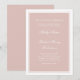 This blush pink wedding invitation features an elegant blend of calligraphy script and modern typography for a timeless, sophisticated look. Designed with a solid blush color palette, this simple and minimalist layout creates a classic wedding invitation that feels both refined and effortlessly stylish.