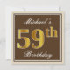 Ces caractéristiques de conception simples et élégantes d'invitation de fête d'anniversaire un message personnalisé comme "le cinquante-neuvième anniversaire de Michael" (avec le "cinquante-neuvième" ayant un faux/imitation or-comme le regard de coloration) dans un secteur carré de couleur brune comportant un contour simple. Le nom dans un élégant blanc-est coloré manuscrit-comme le texte, et peut être customisé. Les caractéristiques arrières ont personnalisé des détails d'invitation. Une invitation de fête d'anniversaire comme ceci pourrait peut-être être employée en invitant des personnes à une fête d'anniversaire étant tenue pour quelqu'un qui célèbre leur neuvième anniversaire cinquante. [~Z0000229]