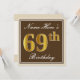 Invitation Elégant, Brown, Faux Gold 69e anniversaire + Nom