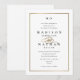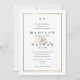 Cette élégante Faire-part de mariage Noir et Blanc Cadre Or est simple et polyvalente. Il présente un design chic blanc et noir avec un monogramme, des détails de script, un cadre or simple et un texte formel modifiable. Cliquez sur le bouton Modifier pour customiser cette conception.