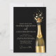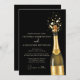 An elegant black and gold Wedding Invitation design featuring a popping champagne bottle, symbolizing celebration and timeless romance. The dark background paired with golden accents creates a luxurious, modern wedding aesthetic perfect for formal, evening, or upscale city weddings. Ideal for couples seeking a classy yet bold announcement that sets the tone for a chic and memorable wedding celebration.