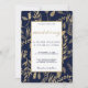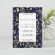 Invitation élégant chic marine bleu or fleuri Mariage