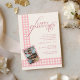 Invitation Elegant Chic Pink Check Typography Galentines Day