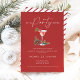 Un cocktail ou deux ? Célébrez votre fête de Noël ou de Nouvel An avec l'élégante invitation à la fête de Noël rouge sur le thème d'un cocktail d'aquarelle martini verre, feuilles saisonniers de pin avec illustration de baies avec calligraphie blanche, mis sur un riche arrière - plan rouge à l'avant, et une coordination motif à rayures rouges et blanches à l'envers pour un glamour, ambiance festive! Personnalisez avec votre nom de famille et les détails de la fête à l'invitation vos amis et votre famille pour une fête de Noël cette saison!