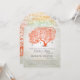 Initiale sculptée dans le tronc d'arbre Whimsical et élégant Argent et Orange Vivant Corail Rustique Pays Forêt Woodsy Arbre Mariage Invitations