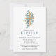 Invitation Élégant Croix Eucalyptus Vert Baptême
