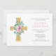Invitation Élégant culte Croix Florale Fille Baptême