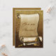 Un élégant arrière - plan en damas brun et brun, un parchemin vintage, une plumes et un puits d'encre doré - le design personnalisé parfait pour toutes vos occasions, pas seulement une fête de fiançailles !