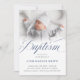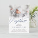 Invitation Élégant Dusty Blue Pastel Script Baptême Photo Dan