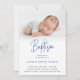 Invitation Élégant Dusty Blue Pastel Script Baptême Photo Dan