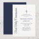 Elegant Dusty Blue Script Boy First Communion Invitation.