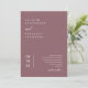 Cette invitation comprend une calligraphie élégante et une police de typographie sans serif simple dans un arrière - plan pourpre poussiéreux avec une photo en arc et un code QR. La simplicité et le design propre de cette invitation fonctionne bien avec tous les thèmes mariages et certainement un grand ajout à votre mariage. Il suffit de customiser les noms et le libellé en quelques étapes simples et personnaliser la carte d'invitation avec votre photo du couple heureux et remplacer le code QR par le vôtre à l'arrière de l'invitation pour donner à votre invitation une touche personnelle agréable. Remarque : La calligraphie élégante du libellé "et" sur le devant et le dos de la carte ainsi que la "réception à suivre" du libellé de l'illustration graphique et d'autres éléments graphiques ne peuvent être modifiés, supprimés ou déplacés. Elles sont réparées. Si vous devez modifier la couleur, vous pouvez customiser la carte d'invitation. Vous pouvez customiser et personnaliser l'invitation afin de répondre à vos besoins mariages et cliquez simplement sur personnaliser de l'invitation. Vous pouvez facilement personnaliser cette invitation avec votre propre texte et la partager avec vos invités numériquement - que ce soit par le texte, par e-mail, ou par les médias sociaux. Si vous préférez, vous avez également la possibilité de poster une version imprimée à vos invités. Ou, vous pouvez faire les deux : envoyer une version numérique et le suivi avec une copie imprimée pour une touche personnelle!