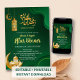 Celebrate the holy month of Ramadan with this elegant Iftar invitation. Featuring a rich emerald green background with 3D gold elements including a glowing lantern, crescent moon, and a beautiful mosque illustration with a camel and goat. Perfect for family gatherings, community Iftar dinners, or Eid celebrations. Easily customize the text to include your event details.