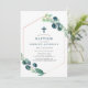 Invitation Elégant Eucalyptus aquarelle avec Baptême croisé