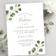 Petit garçon ou fille moderne Baptême / Invitation Christening avec aquarelle eucalyptus verdure branches feuilles feuillage et croix d'or.